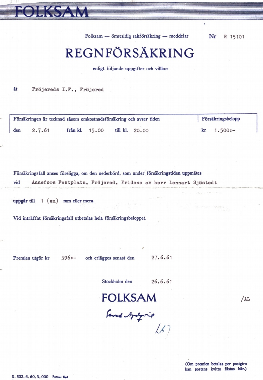 Undrar om Vasaloppet tecknat regnförsäkring? Det gjorde i alla fall Fröjereds IF 1961 vid ett arrangemang på Annefors festplats. Intressant läsning!