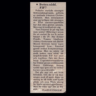 Det är så fantastiskt att ha ett arkiv av tidningsurklipp och dokumentation att ösa ur! Vid kvällens styrelsemöte fick en av styrelsemedlemmarna välja ett årtal, en månad och ett datum. 23 oktober 1987 blev det, och det var väl inte den roligaste läsningen om FIF, men likväl intressant. 💙