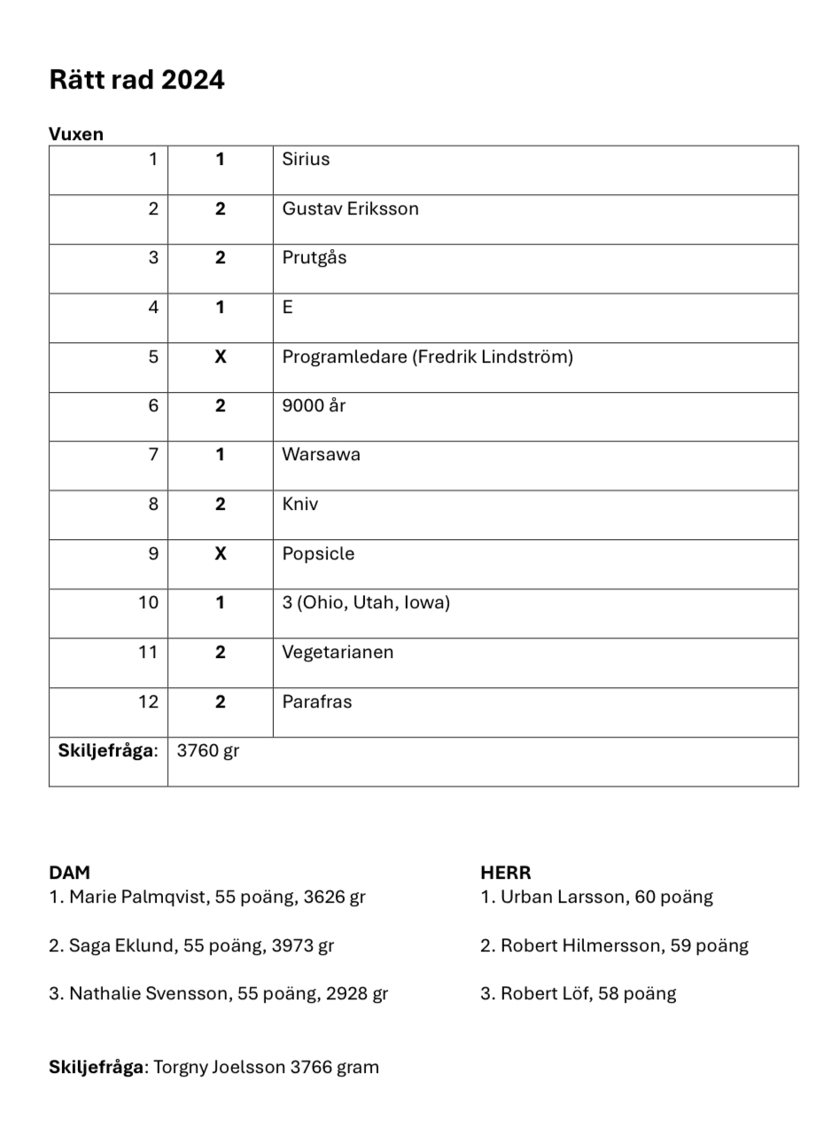 Det har visat sig att vi gjort en felräkning på ett av startkorten vilket ändrat på vinnarna i dam. Vi ber så hemskt mycket om ursäkt för detta. Här kommer de rätta vinnarna.