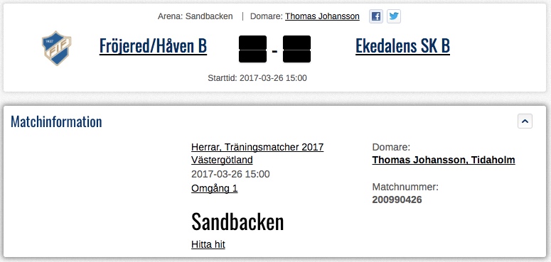 Fröjered/Håven U möter Ekedalen U, start kl15.00.