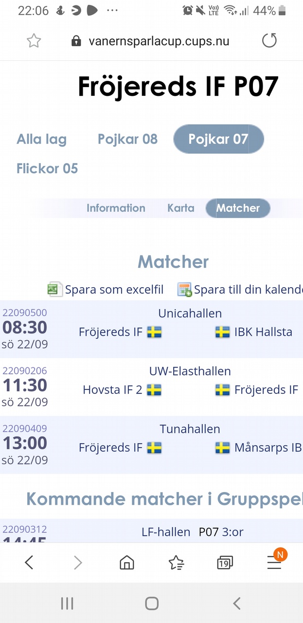 Vi spelar första matchen kl 08.30..