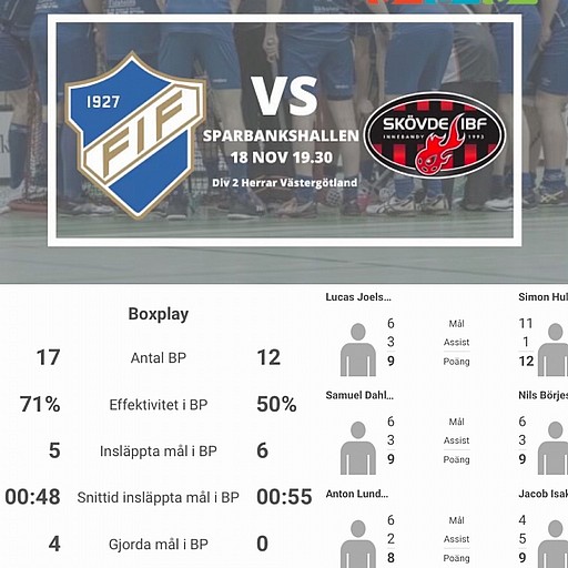 Sedan är det ju något unikt som händer under kvällen. Far och son kommer att mötas! Det är nämligen så att pappa Fredrik Warström tillika målvakt i FIF kommer möte sonen Liam som även han är målvakt och då i Skövde. Vem skall vinna den kampen?