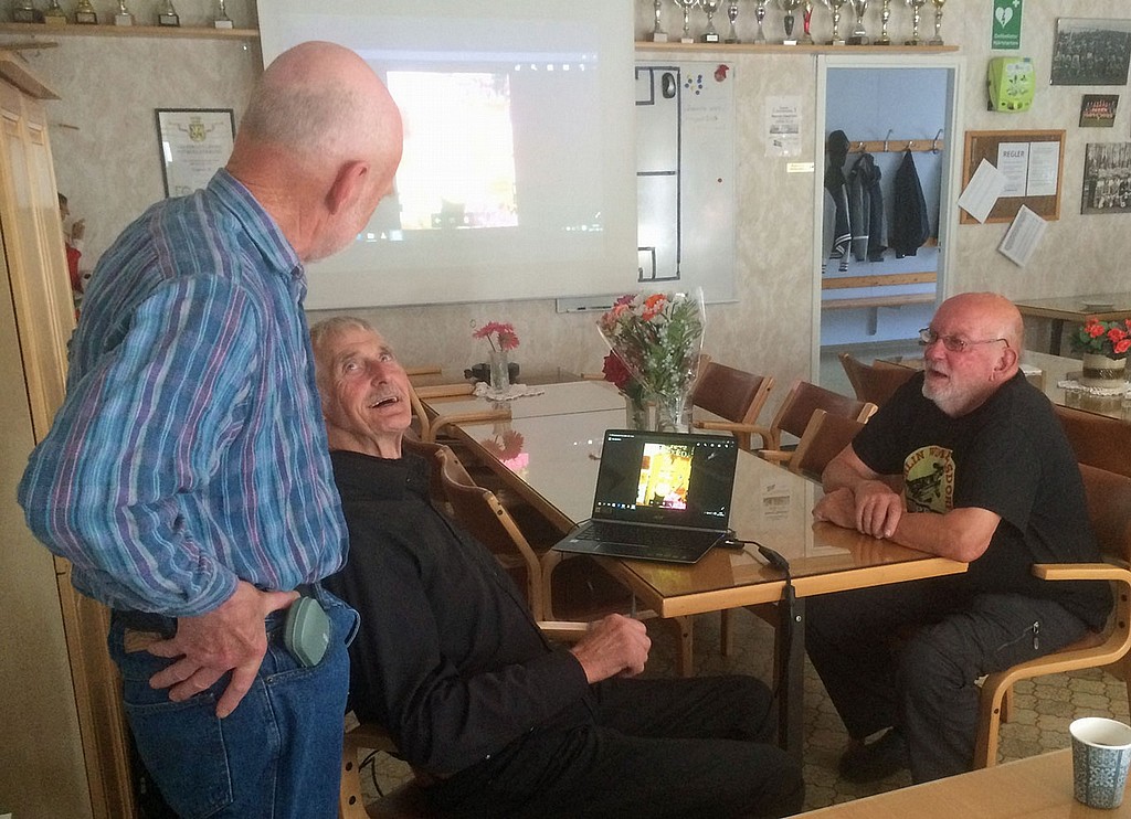 En bild från senaste Maxififfarnas träff på Fröjevi, Stig Norlander och Jan Dahlman samspråkar med Lennart Johansson som hade en hel del att berätta om Arméns Lejon. Något som alla tyckte var riktigt intressant.