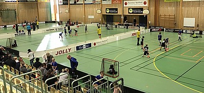 Denna gång var det vår tur att anordna sammandrag. Vilken succé det blev på alla plan! Sparbankshallen fick ställas om till tre planer på tvären, vilket innebar att sarg fick köras från forshallen och kommunens förråd. Kan vi hoppas på att kommunen går med på att köpa in nya sargar till våra hallar som passar våra behov? Skövde och Mariestad har ju fina sargar när vi besöker dem. Skövde var vänliga och tog med två mål så vi fick tre kompletta planer. Kiosken bemannades upp och där var det full ruljangs så kioskpersonalen hade fullt upp. Stort tack till er! Sekretariatet med Niklas som tekniker och Anders som speaker gjorde att dagen flöt på smärtfritt och skapade en härlig inramning på tillställningen. Skövde och Lockerud kom med tre lag var, så vi var nio lag som möttes på planerna. Många jämna och spännande matcher spelades. Totalt tjugoen matcher avverkades under tre timmar. Vilken underhållning! Det är jätteroligt som ledare att stå och se hur barnen far fram, ivrigt påhejade av föräldrar och släkt på läktaren. Denna gång hade vi lagt in lite längre paus mellan matcherna. Det var nog bra, då han vi få i oss lite mat så vi var redo för nästa match. Teddys föräldrar fixade tvätten för andra gången i rad! Vi tackar och bugar. Nu får vi hålla oss till träning ett tag fram till lö 4 mars då Lockerud ordnar sammandrag i Mariestad mellan c:a 11-14. Vi ses på träningen på söndag. / Ledarna